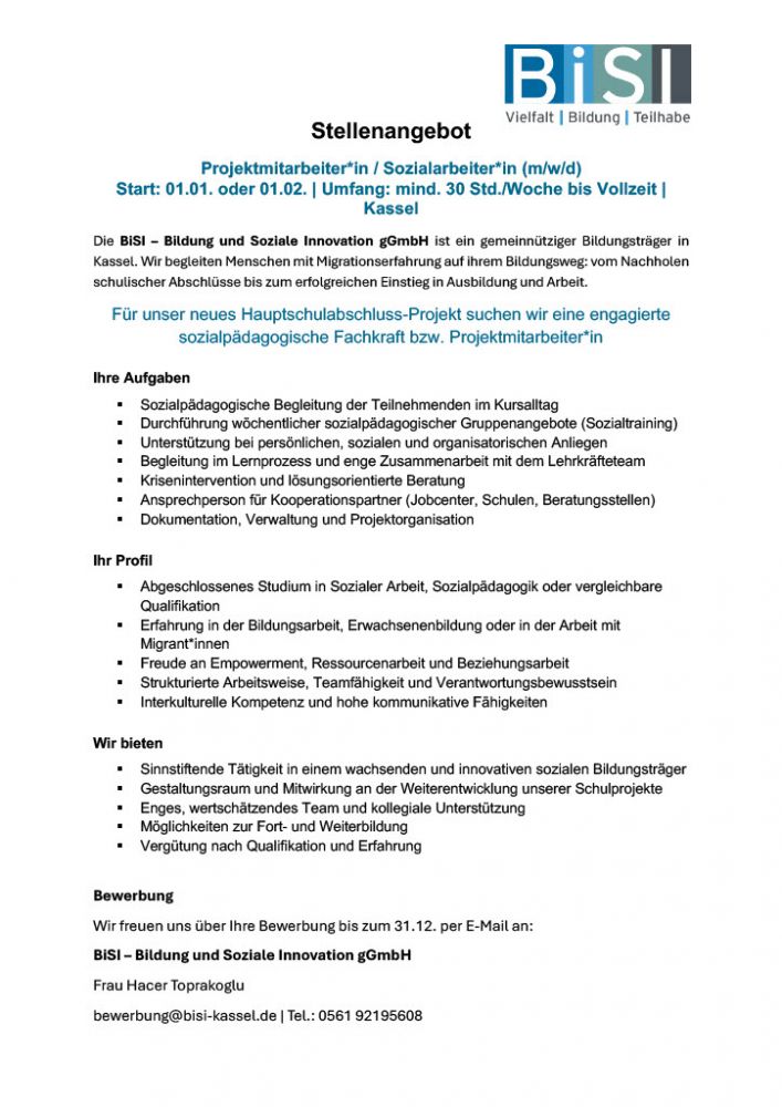 Herzlich willkommen bei BiSI - Bildung und Soziale Innovation gGmbH!