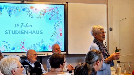 Das Jubiläum zum 10. Geburtstag des Studienhauses feierten über 35 Mitarbeitende, Ehrenamtliche sowie Teilnehmende des Mittagtisches am 30. September. Bei einem eritreischen Essen, das an das erste Schulprojekt im Studienhaus erinnerte und an dem vor allem eritreische Männer teilgenommen hatten, wurden viele Anekdoten und Geschichten aus den vergangenen Jahren geteilt.